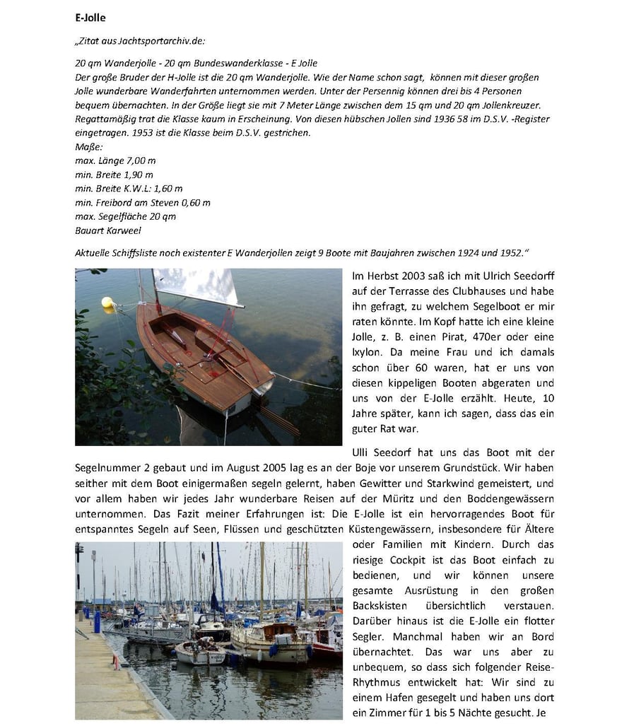 1. 20 qm Wanderjolle – 20 qm Bundeswanderklasse – E-Jolle